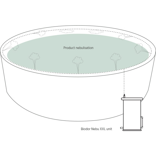Our approach combines the use of the Biodor Control L (BCL) product with the Biodor Nebu XXL nebulisation equipment.